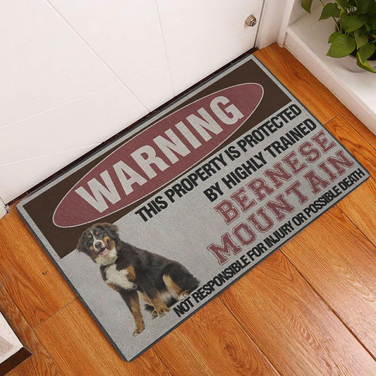 Welcome Doormat, This Property is Protected by a Highly Trained Bernese Mountain Welcome Doormat, Indoor Outdoor Doormat Home Decor