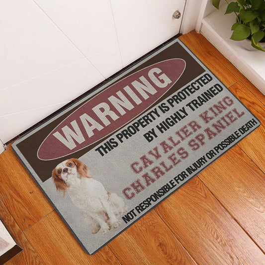 Welcome Doormat, This Property is Protected by a Highly Trained Cavalier King Welcome Doormat, Indoor Outdoor Doormat Home Decor