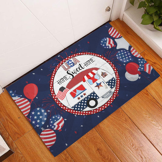 Welcome Doormat, USA Home Sweet Home 4th of July Happy Independence Day Patriotic Welcome Doormat, Indoor Outdoor Doormat Home Decor