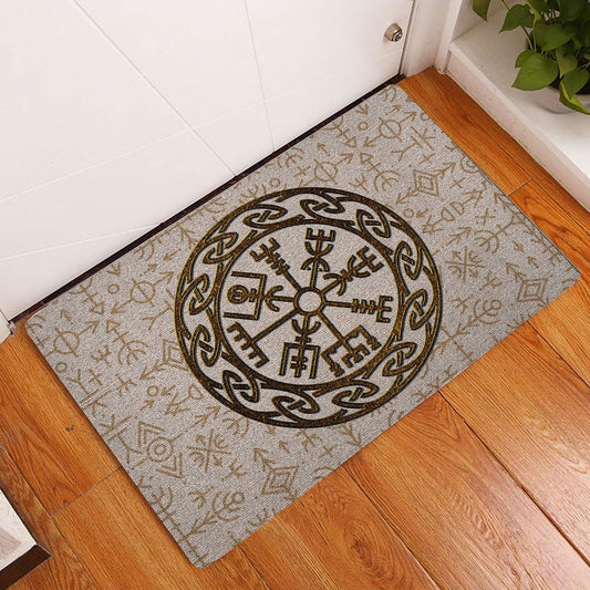 Welcome Doormat, Viking Celtic Golden Compass Vegvisir Circle Norse Runes Beige Welcome Doormat, Indoor Outdoor Doormat Home Decor