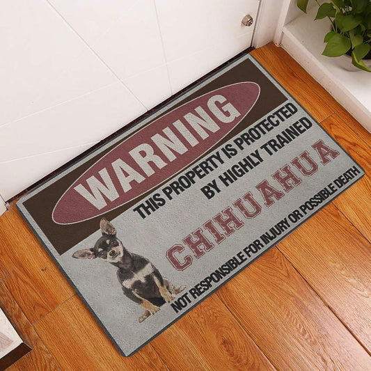 Welcome Doormat, Warning This Property is Protected by Highly Trained Chiahuahua Welcome Doormat, Indoor Outdoor Doormat Home Decor