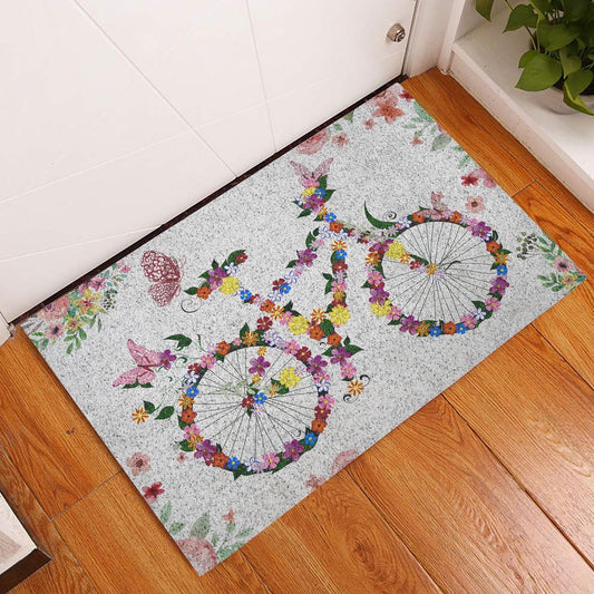 Welcome Doormat, Welcome Bike Bicycle with Spring Flowers Floral Grey Welcome Doormat, Indoor Outdoor Doormat Home Decor