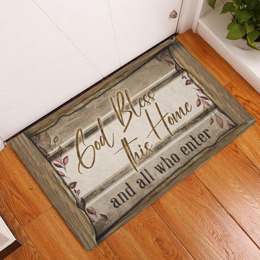 Welcome Doormat, God Bless This Home And All Who Enter Wood Printed Pattern Welcome Doormat, Indoor Outdoor Doormat Home Decor