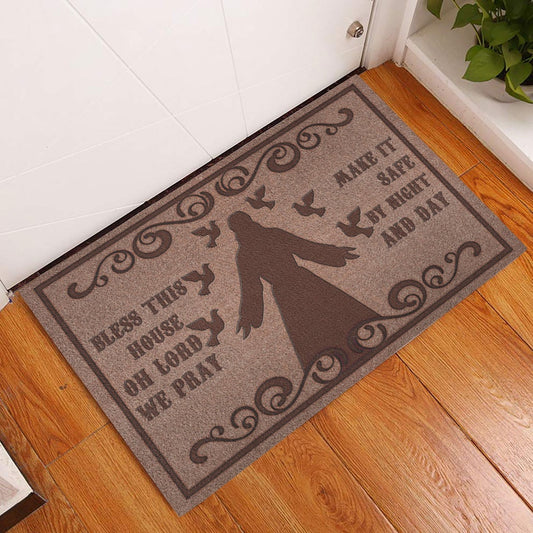 Welcome Doormat, God Family Bless This House Oh Lord We Pray Welcome Doormat, Indoor Outdoor Doormat Home Decor