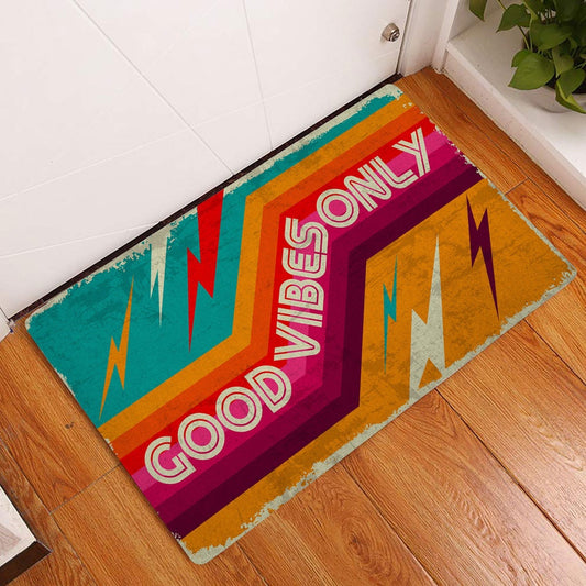 Welcome Doormat, Good Vibes Only Colorful Vintage Retro Style Welcome Doormat, Indoor Outdoor Doormat Home Decor