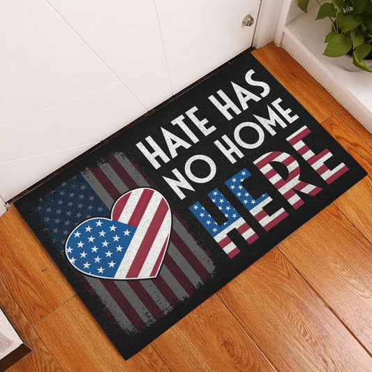Welcome Doormat, Hate has no home here Patriotic American US Flag Peace Welcome Doormat, Indoor Outdoor Doormat Home Decor