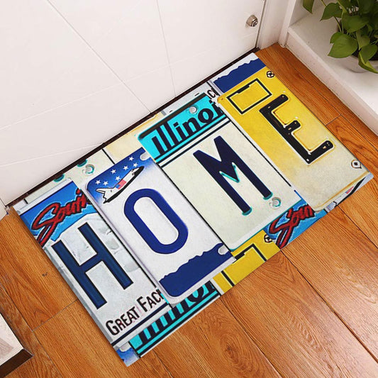 Welcome Doormat, Home Vintage License Plate Letters Pattern Welcome Doormat, Indoor Outdoor Doormat Home Decor