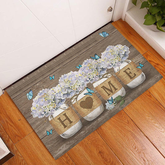 Welcome Doormat, Hydrangea Jars Floral Butterfly Home Brown Housewarming Gift Welcome Doormat, Indoor Outdoor Doormat Home Decor