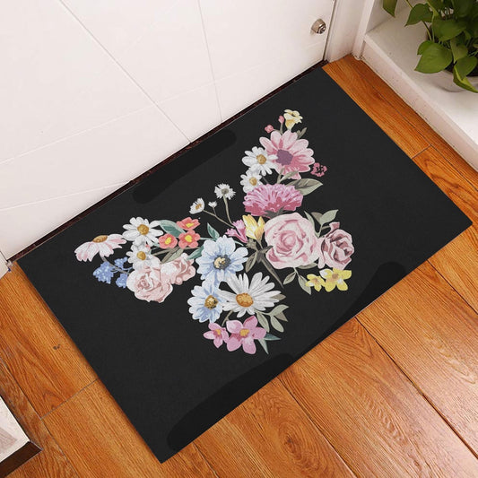 Welcome Doormat, Butterfly Colorful Spring Flower Butterflies Flower Floral Black Welcome Doormat, Indoor Outdoor Doormat Home Decor