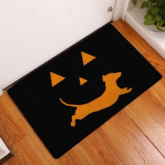 Welcome Doormat, Dachshund Pumpkin Happy Halloween Boo Trick Or Treat Moon Night Welcome Doormat, Indoor Outdoor Doormat Home Decor