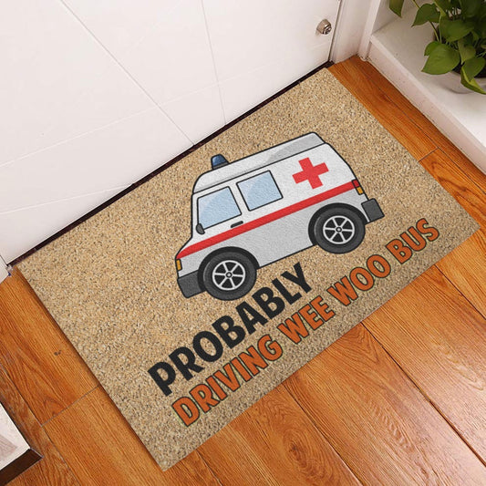 Welcome Doormat, EMT Paramedic Probably Driving Wee Woo Bus Welcome Doormat, Indoor Outdoor Doormat Home Decor