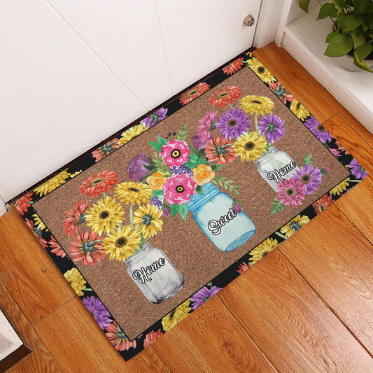 Welcome Doormat, Flower Floral Jars Home Sweet Home Brown Housewarming Gift Welcome Doormat, Indoor Outdoor Doormat Home Decor