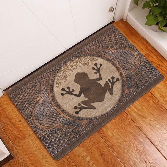Welcome Doormat, Frog Sculpture Wood Pattern Animal Lovers Welcome Doormat, Indoor Outdoor Doormat Home Decor