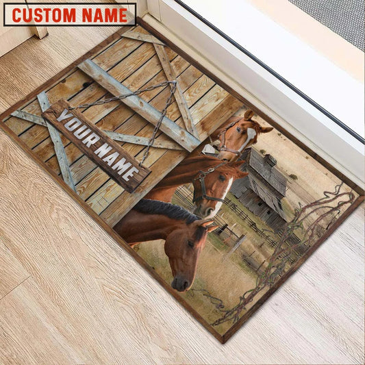 Farm House Door Mat, Horse Christmas Custom Name Doormat, Custom Welcome Mats