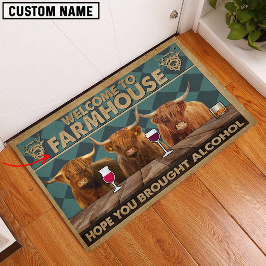 Farm House Door Mat, Highland Hope You Bought Alcohol Custom Name Doormat, Custom Welcome Mats