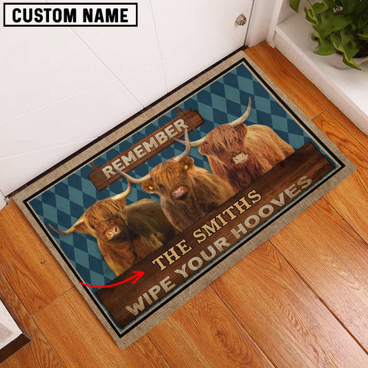 Farm House Door Mat, Highland Wipe Your Hooves Custom Name Doormat, Custom Welcome Mats