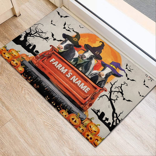Farm House Door Mat, Holstein Custom Farm Name Halloween Doormat, Custom Welcome Mats