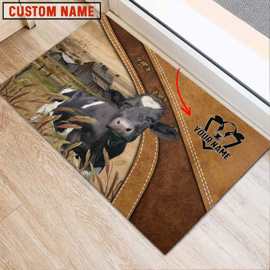Farm House Door Mat, Holstein Custom Name Leather Pattern Doormat, Custom Welcome Mats