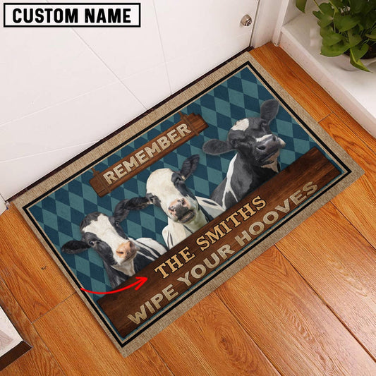 Farm House Door Mat, Holstein Wipe Your Hooves Custom Name Doormat, Custom Welcome Mats