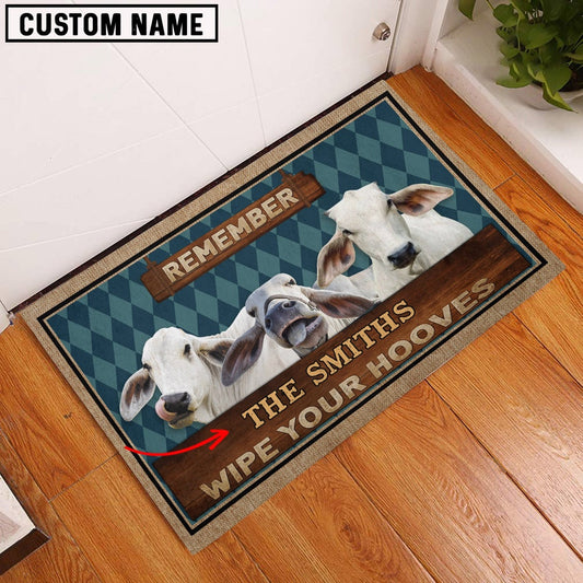 Farm House Door Mat, Brahman Wipe Your Hooves Custom Name Doormat, Custom Welcome Mats