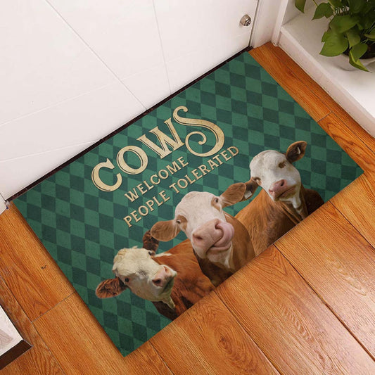 Farm House Door Mat, Simmental Welcome People Tolerated Doormat, Custom Welcome Mats