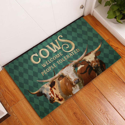 Farm House Door Mat, Shorthorn Welcome People Tolerated Doormat, Custom Welcome Mats