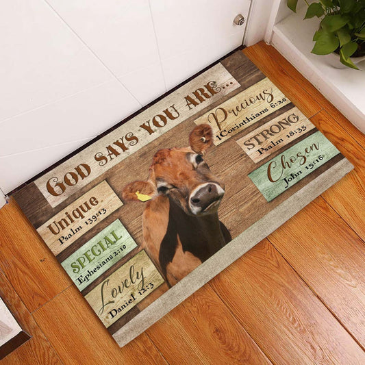 Farm House Door Mat, God Says You Are Jersey Cattle Doormat, Custom Welcome Mats
