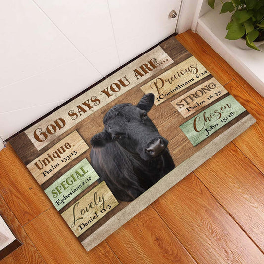 Farm House Door Mat, God Says You Are Black Angus Cattle Doormat, Custom Welcome Mats