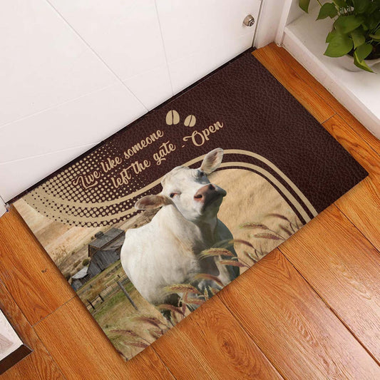 Farm House Door Mat, Charolais No Horns Live Like Someone Left The Gate Open Doormat, Custom Welcome Mats