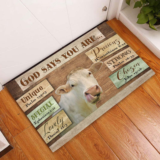 Farm House Door Mat, God Says You Are Charolais Cattle Doormat, Custom Welcome Mats