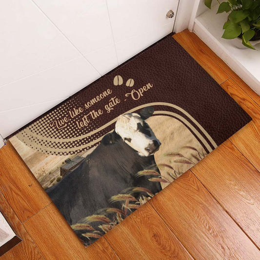 Farm House Door Mat, Black hereford Live Like Someone Left The Gate Open Doormat, Custom Welcome Mats