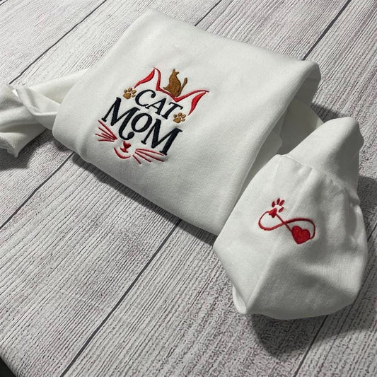 Embroidered Christmas Sweatshirt, Infinity Cat Love Embroidered Sweatshirt