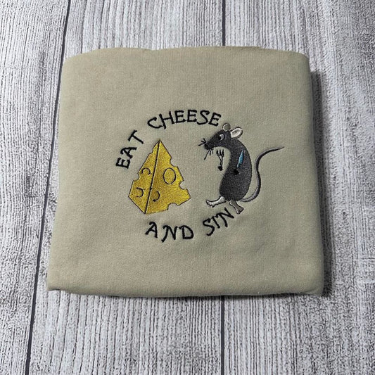 Embroidered Christmas Sweatshirt, Eat Cheese And Sin Embroidered Sweatshirt