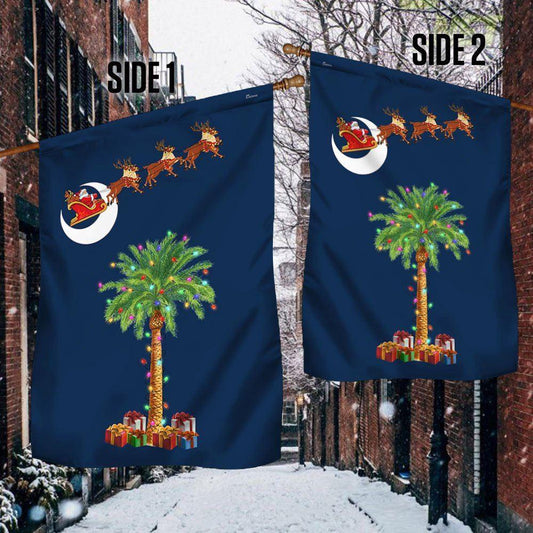 South Carolina Christmas Flag Santa Palmetto Tree, Christmas Outdoor Decor Decoration