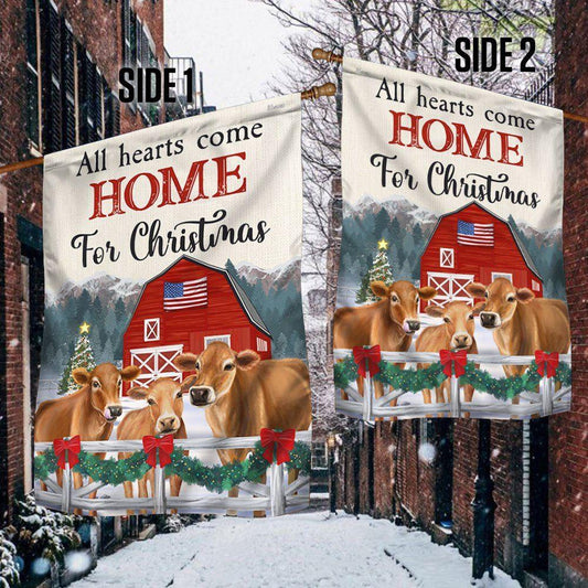 Cow Christmas Flag All Hearts Come Home For Christmas Cattle Jersey, Christmas Outdoor Decor Decoration