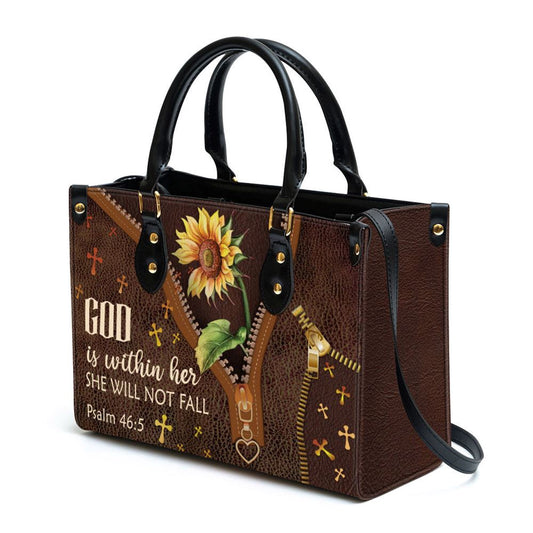 Christian Handbags, Personalized God Is Within Her, Beautiful Sunflower Leather Handbag, Religious Bag, Christian Bag