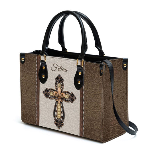 Christian Handbags, Personalized Cross 2 Leather Handbag, Religious Bag, Christian Bag