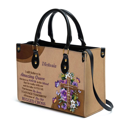 Christian Handbags, Personalized I Still Believe In Amazing Grace Leather Handbag, Custom Name Floral Cross Leather Handbag, Christian Bag