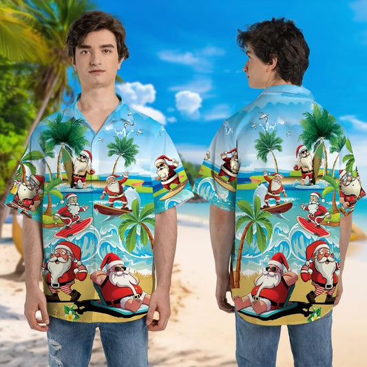 Santa Surfing Tropical Hawaiian Shirt, Xmas Hawaiian Shirts