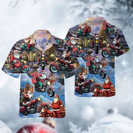 Santa Motorcycle Hawaiian Shirt For Men Womens, Xmas Hawaiian Shirts