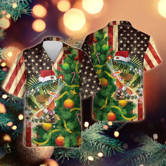 Perch Fishing Pattern Hawaiian Shirt, Xmas Hawaiian Shirts
