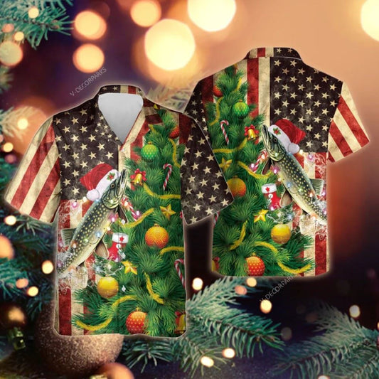 Pike Fish Pattern Hawaiian Shirt, Xmas Hawaiian Shirts
