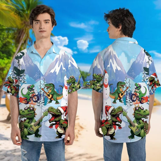 Christmas Dinosaur Santa Clause Dino Printed Hawaiian Shirt, Xmas Hawaiian Shirts