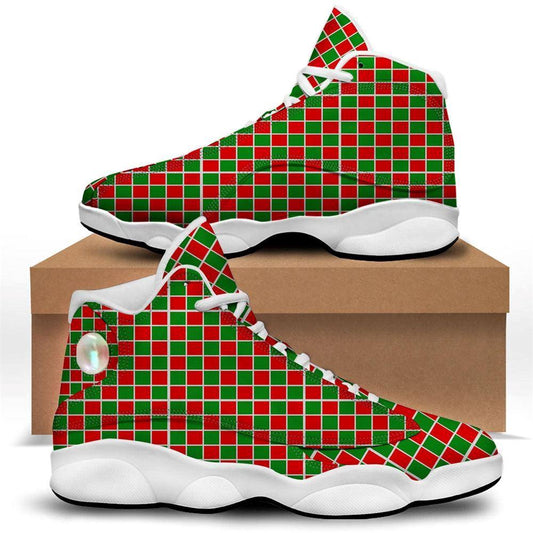 Christmas Argyle Red And Green Print Basketball Shoes, Christmas Basketball Shoes, Christmas Shoes