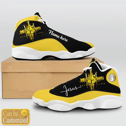 Jesus Saved My Life Custom Name Jd13 Shoes Yellow, Jesus Christ Shoes
