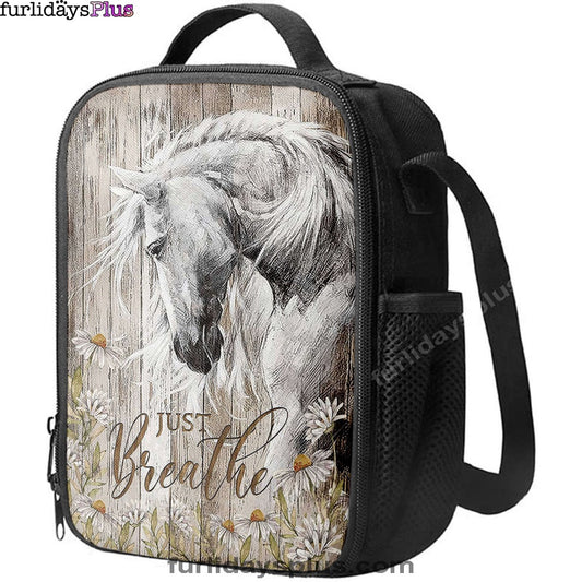 White Horse Daisy Flower Just Breathe Lunch Bag, Christian Art, Bible Verse Lunch Bag