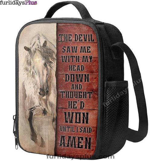 White Horse The Devil Thought He'd Won Until I Said Amen Lunch Bag, Christian Art, Bible Verse Lunch Bag