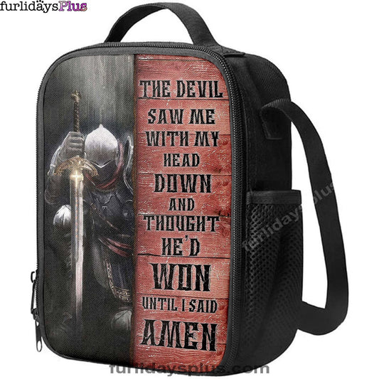 Warrior The Devil Thought He'd Won Until I Said Amen Lunch Bag, Christian Art, Bible Verse Lunch Bag