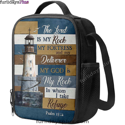 The Lord Is My Rock Lighthouse Wood Cross Lunch Bag, Inspirational Lunch Bag, Christian Lunch Bag