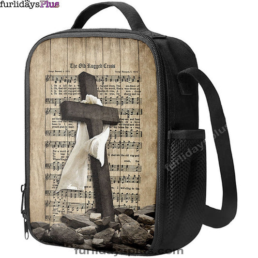 The Old Rugged Cross Lunchbag, Black Cross White Silk Music Sheet Lunchbag Lunch Bag, Bible Verse Lunch Bag, Christian Lunchbag